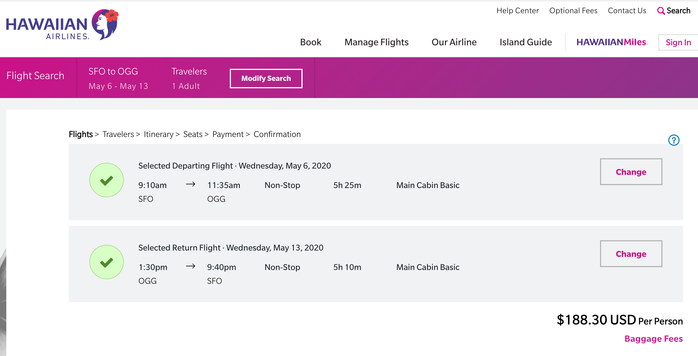 San Francisco (SFO) to Maui (OGG) for $188 round trip nonstop on Hawaiian: