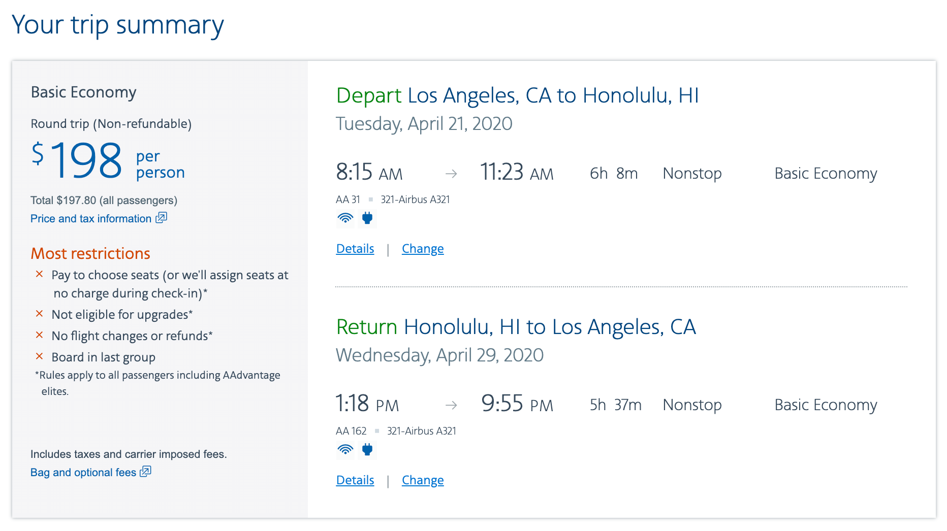 Los Angeles (LAX) to Honolulu (HNL) for $198 round trip nonstop on American: