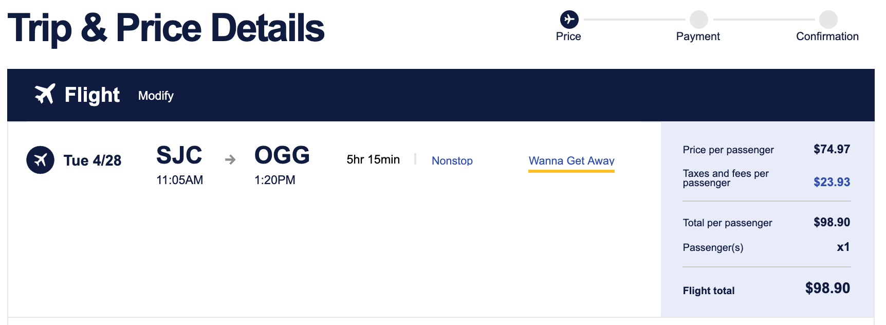 San Jose (SJC) to Maui (OGG) for $99 one way nonstop on Southwest: