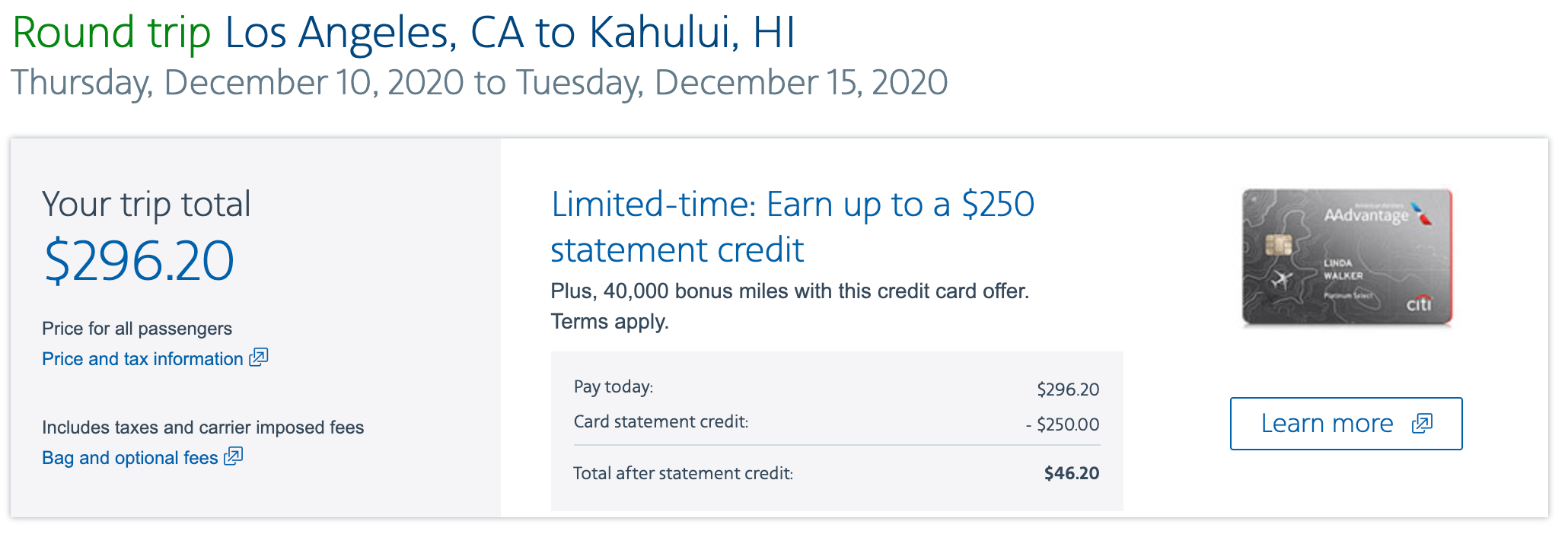 Los Angeles (LAX) to Maui (OGG) for $296 round-trip nonstop on American Airlines: