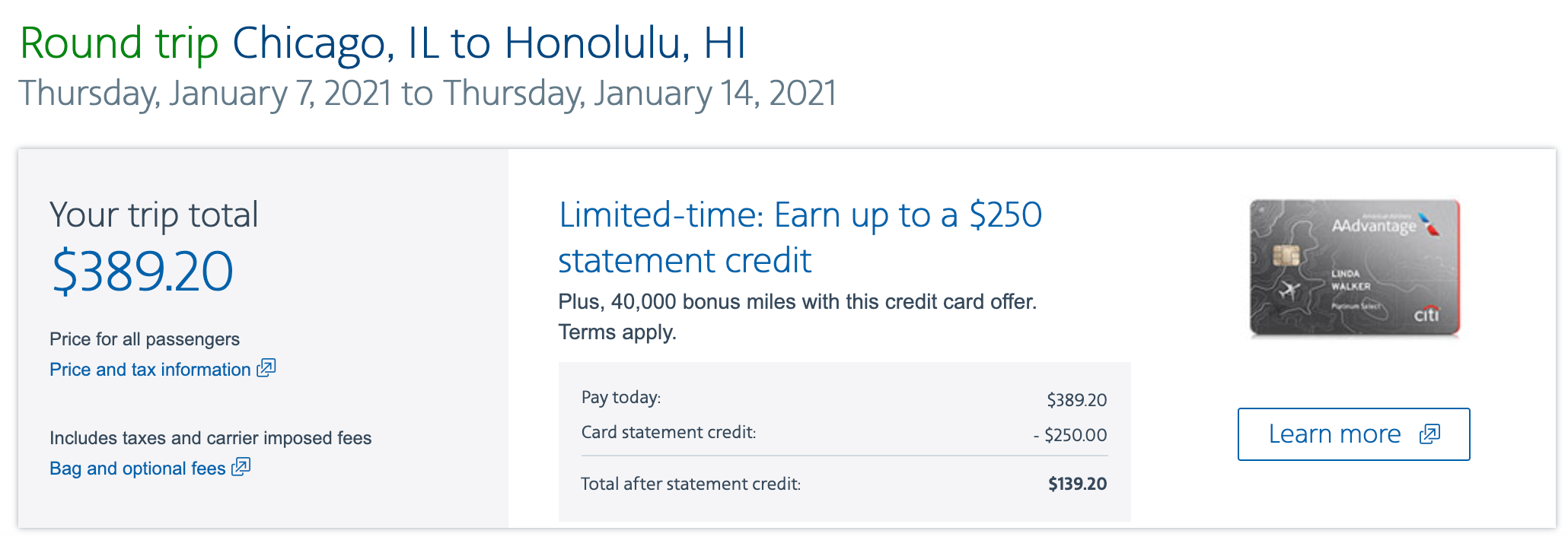 Chicago (ORD) to Honolulu (HNL) for $389 round-trip on American Airlines: