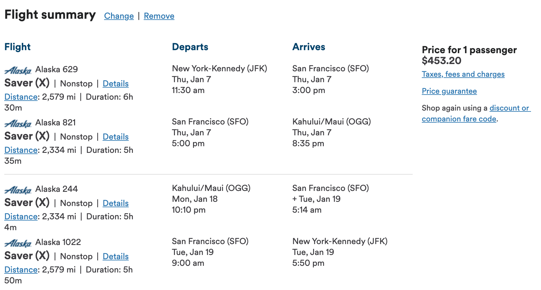 New York-JFK (JFK) to Maui (OGG) for $453 round-trip on Alaska Airlines: