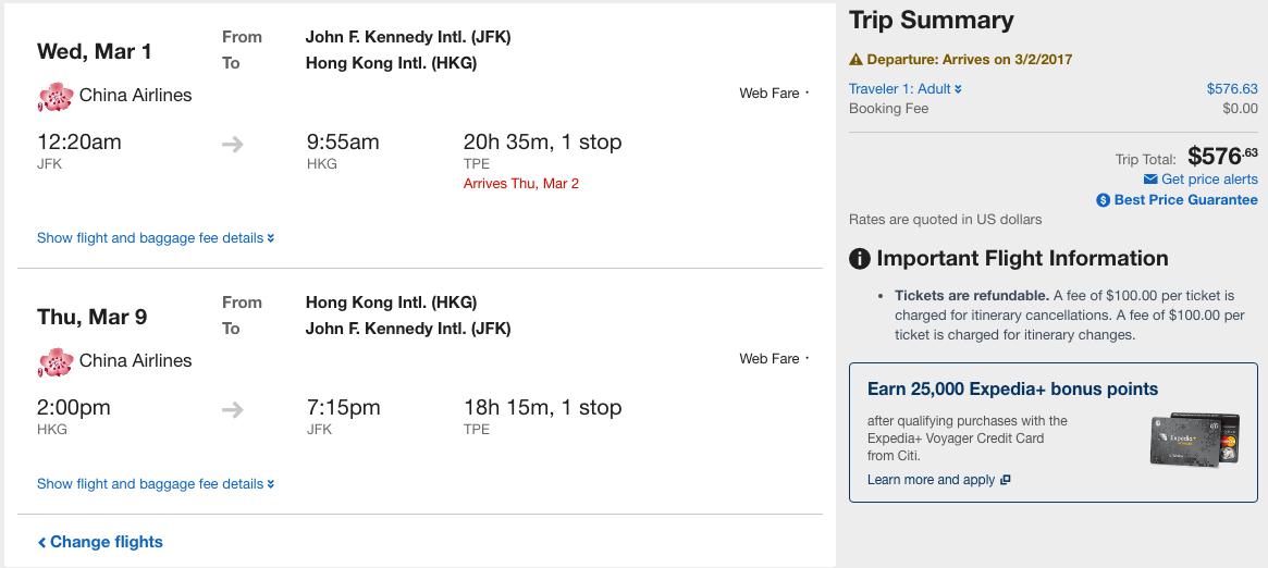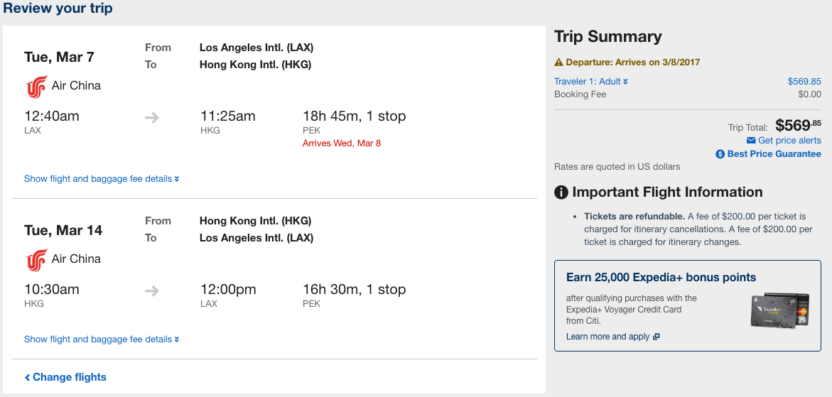 Airfare deals are typically only available on limited dates. We recommend that you use Google Flights to find dates to fly, then book through an online travel agency, such as Orbitz or Expedia, which allows you to cancel flights without penalty by 11pm Eastern Time within one day of booking. However, if you’re using the American Express Platinum Card, you’ll need to book directly with the airline or through Amex Travel portal to get 5x MR points. Remember: Fares may disappear quickly, so book right away and take advantage of Orbitz or Expedia’s courtesy cancellation if you’re unable to get the time away from work or family.