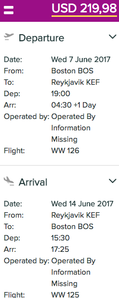 Keep in mind that WOW Air is a budget airline, so you'll be paying extra if you want to choose your seat or bring a large carry-on bag. Make sure you use Google Flights to find availability from your desired city, as the departure dates are scattered.