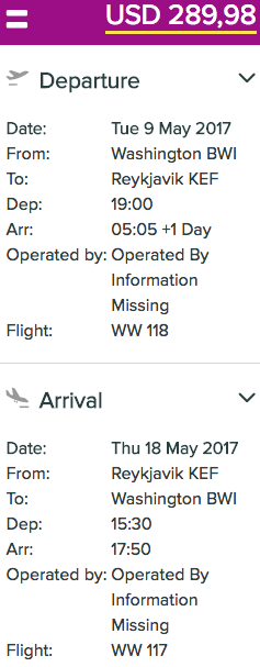 Baltimore (BWI) to Reykjavik (KEF) for $290 round-trip: