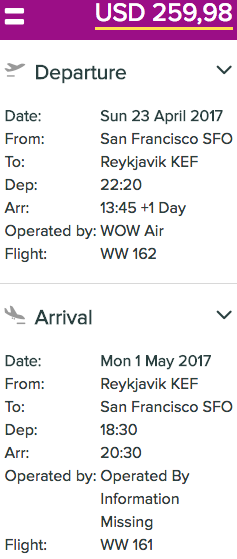 San Francisco (SFO) to Reykjavik (KEF) for $260 round-trip: