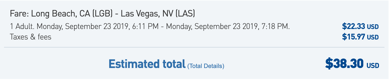 Long Beach, CA (LGB) to Las Vegas (LAS) for $39 one-way + nonstop: