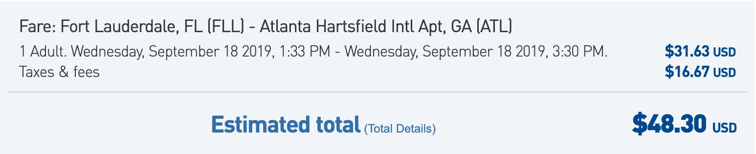Fort Lauderdale (FLL) to Atlanta (ATL) for $49 one-way + nonstop: