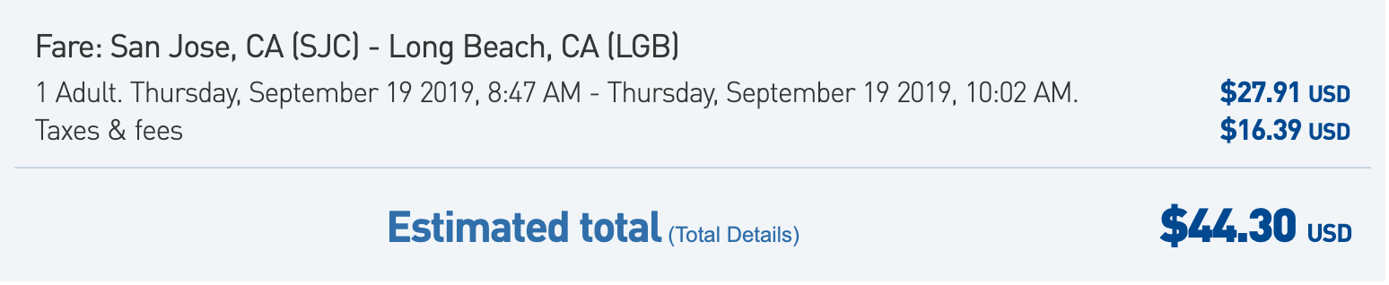 San Jose, CA (SJC) to Long Beach, CA (LGB) for $45 one-way + nonstop: