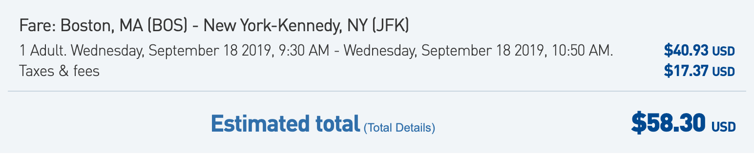 Boston (BOS) to New York City (JFK) for $59 one-way + nonstop: