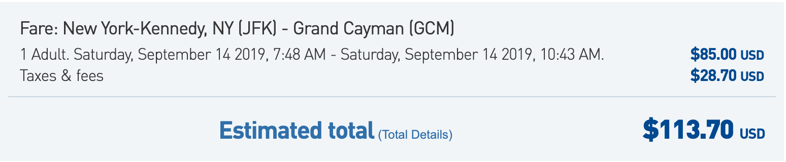 New York City (JFK) to Grand Cayman (GCM) for $114 one-way + nonstop: