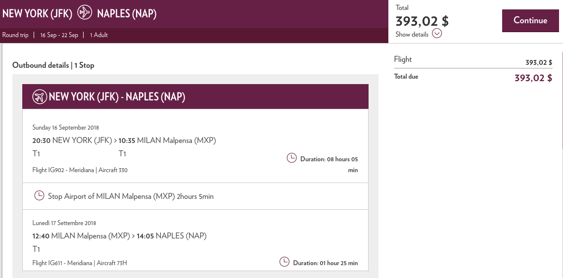 New York (JFK) to Naples (NAP) in September for $394 nonstop round-trip on Air Italy in Light Economy: