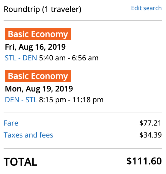 Saint Louis (STL) to Denver (DEN) for $112 round-trip on Spirit: