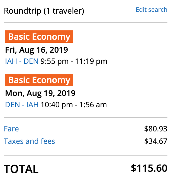 Houston (IAH) to Denver (DEN) for $116 round-trip on United: