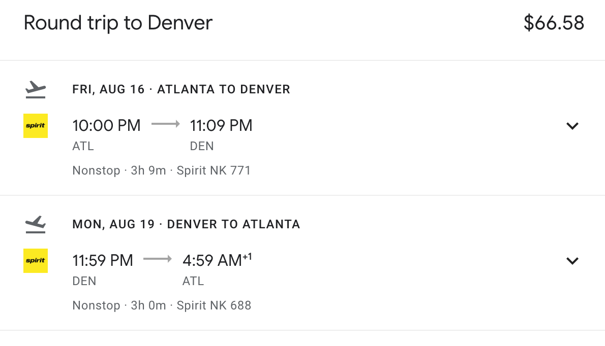 Atlanta (ATL) to Denver (DEN) for $67 round-trip on Spirit: