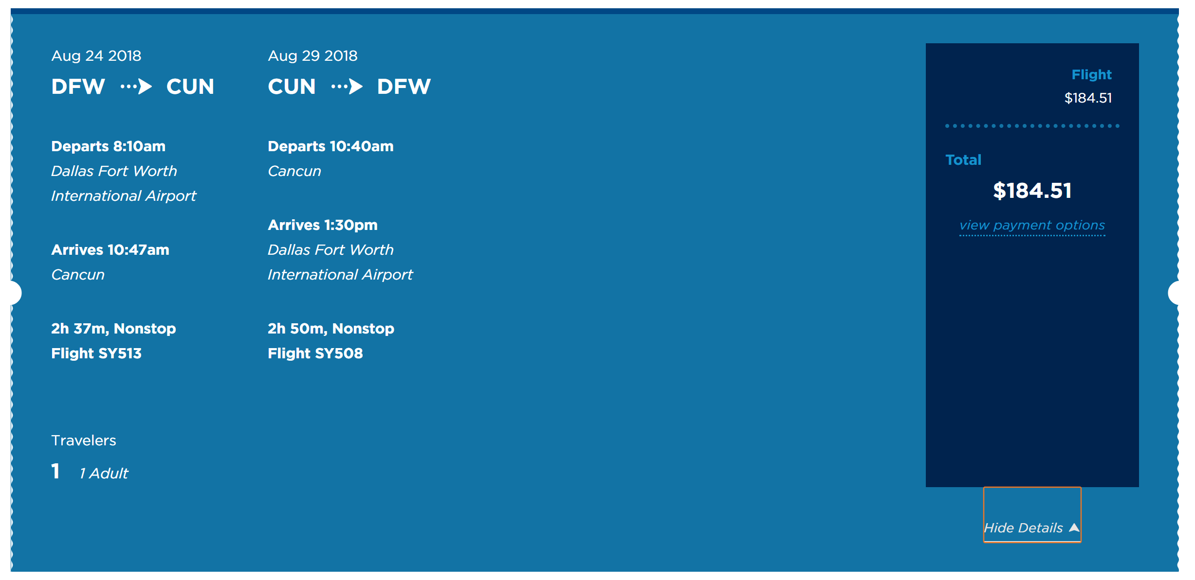 Dallas/Fort Worth (DFW) to Cancun (CUN) on Sun Country for $185 round-trip: