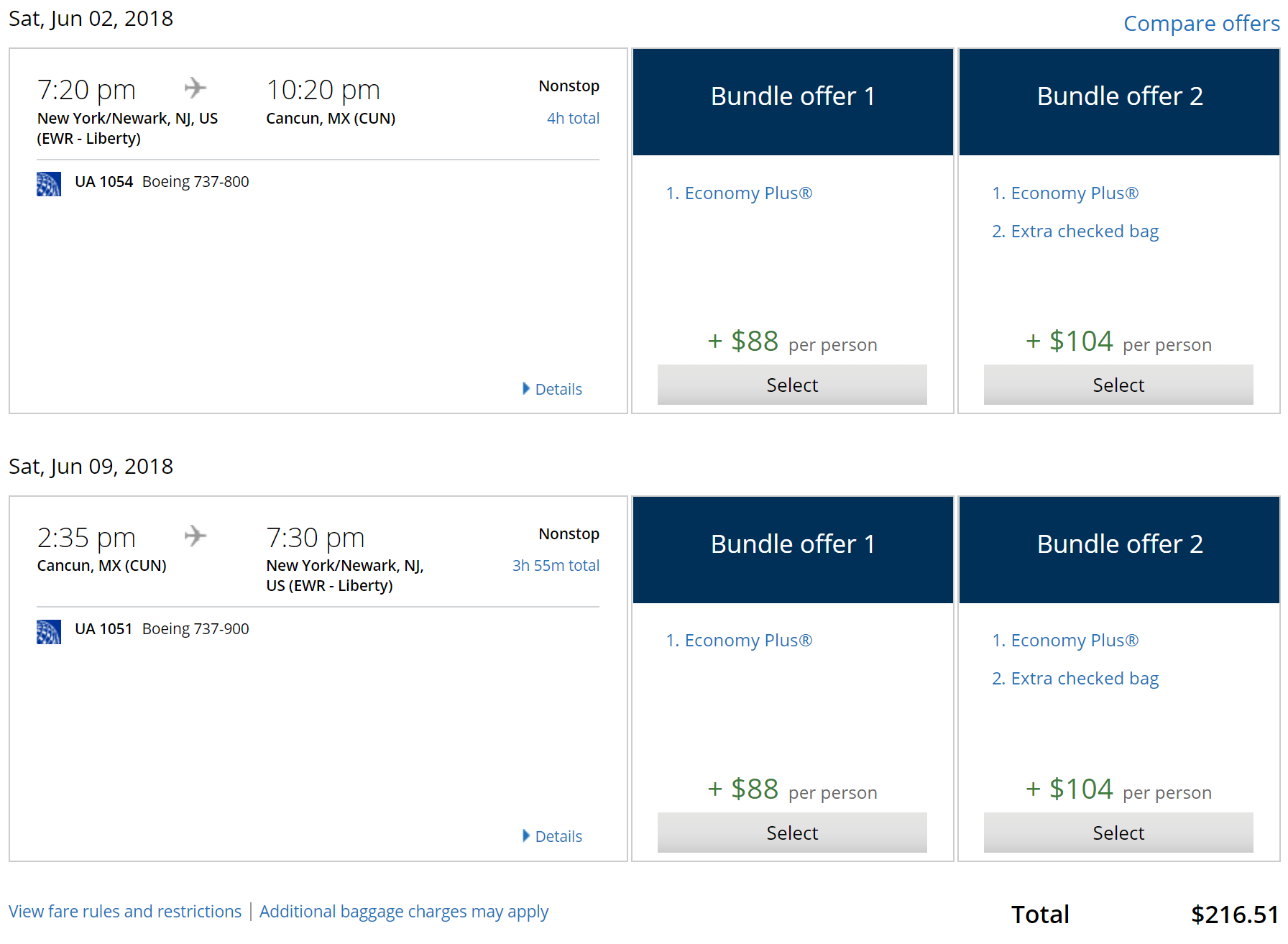 Newark (EWR) to Cancun (CUN) on United for $217 round-trip:
