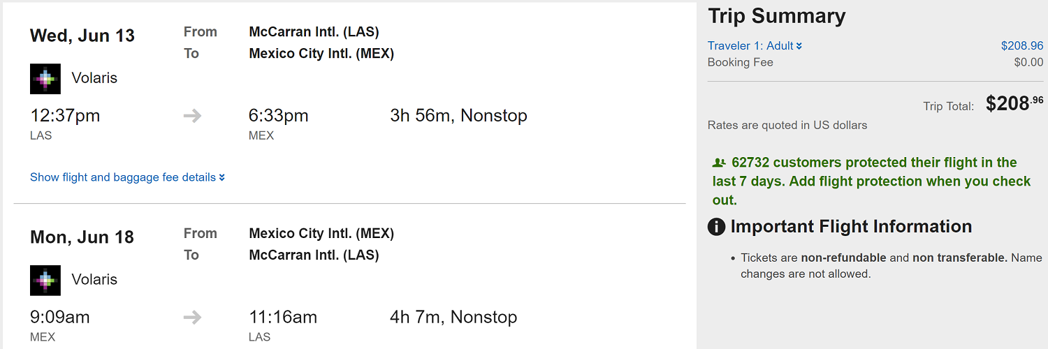 Las Vegas (LAS) to Mexico City (MEX) on Volaris for $209 round-trip: