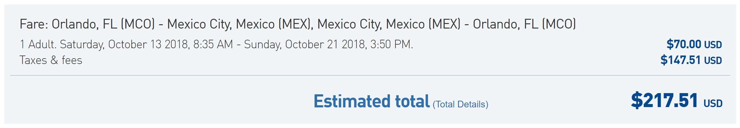 Orlando (MCO) to Mexico City (MEX) on JetBlue for $218 round-trip: