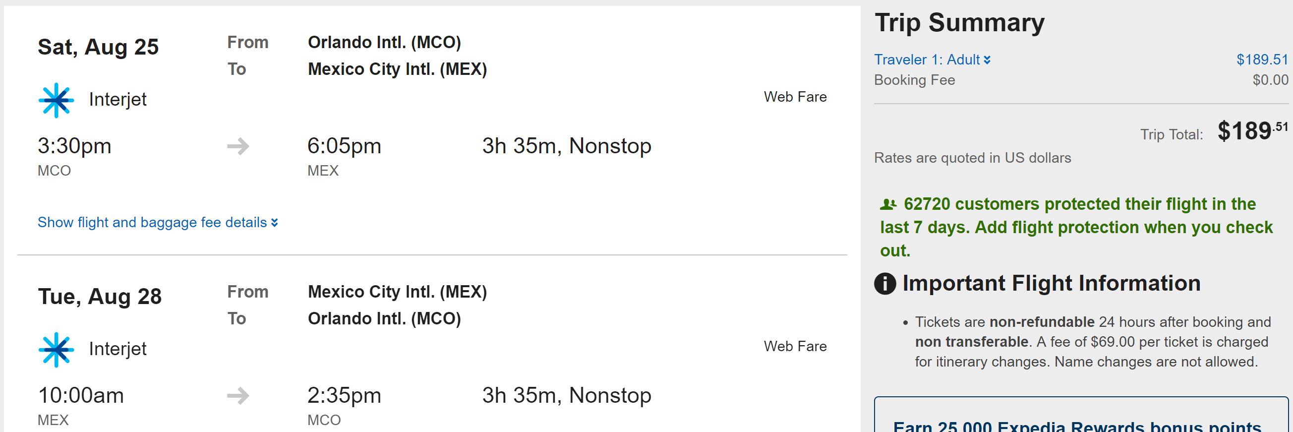 Orlando (MCO) to Mexico City (MEX) on Interjet for $190 round-trip: