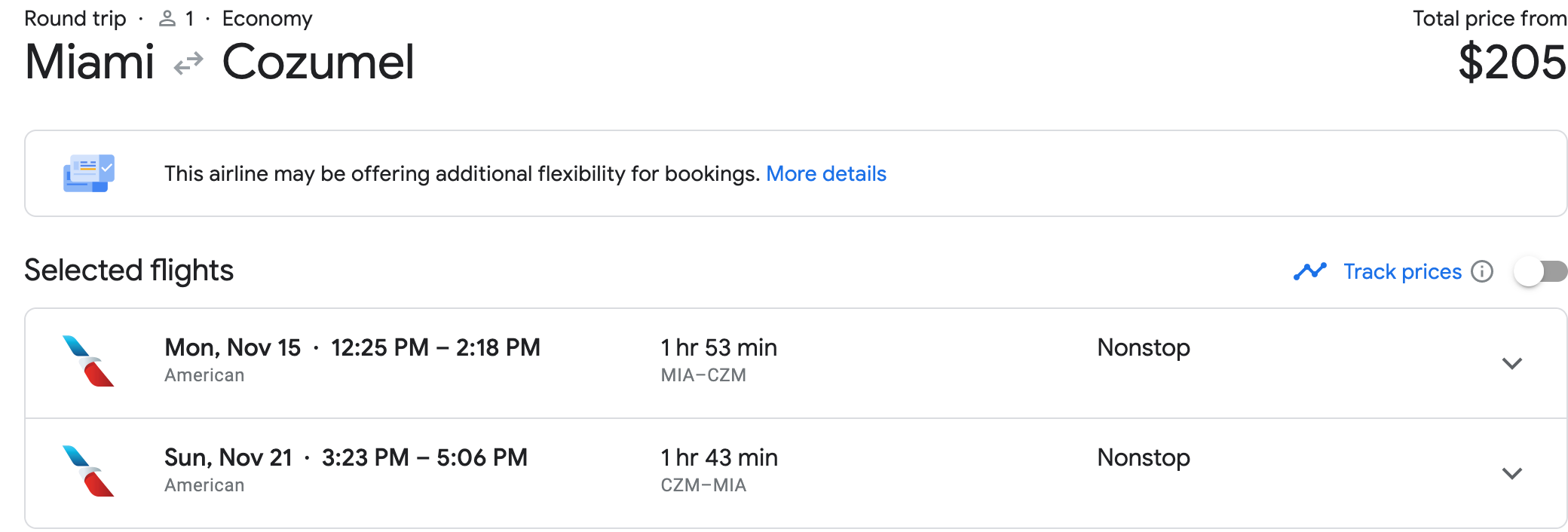 For the same price, you could take a basic-economy flight also on American departing from Miami International Airport (MIA) the week before Thanksgiving.