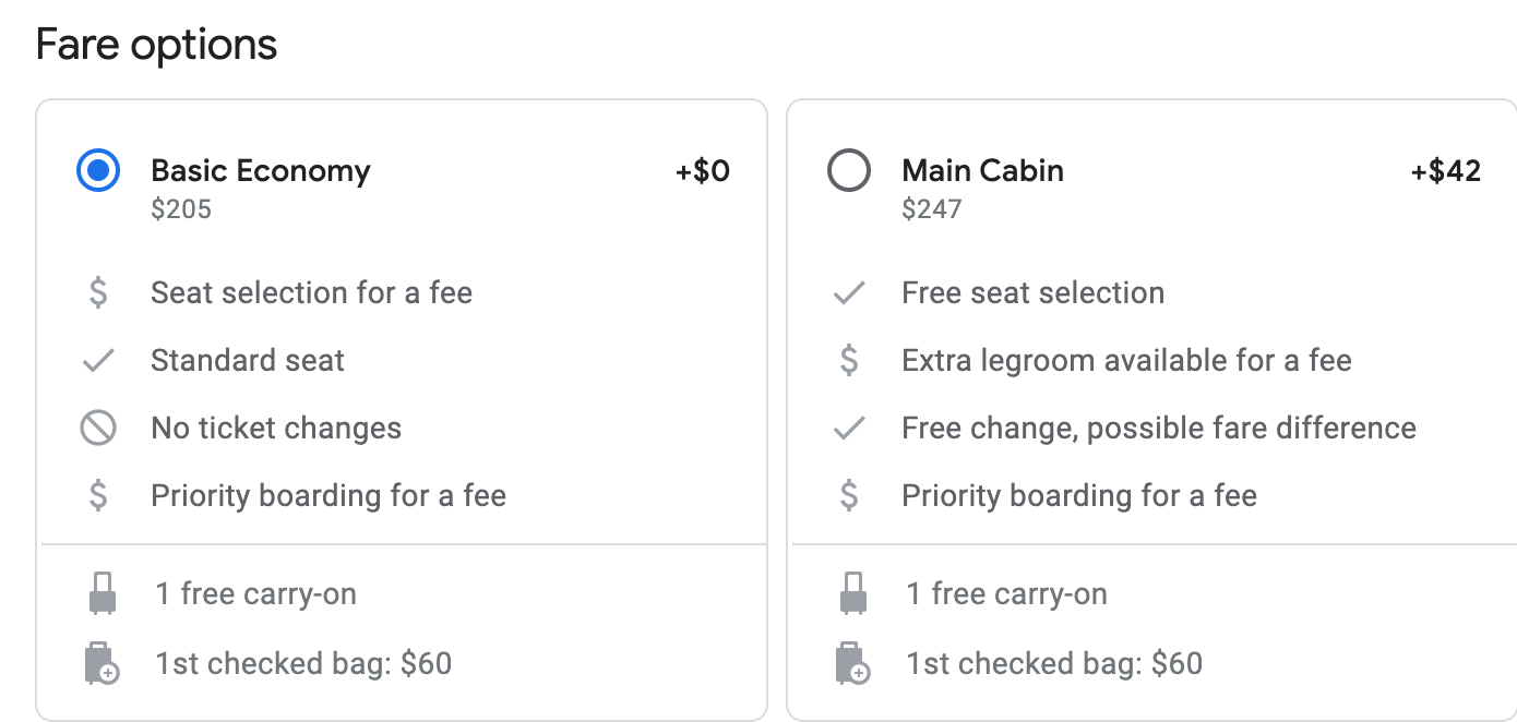 Note that this fare would charge you for seat selection, but you would still be able to carry on one bag for free.