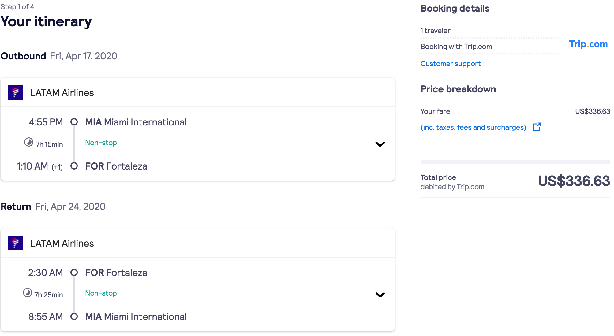 Miami (MIA) to Fortaleza (FOR) for $305 round-trip nonstop via Trip.com: