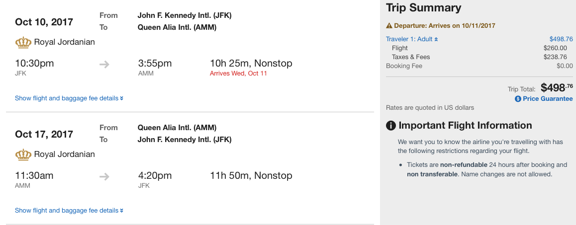 New York (JFK) to Amman (AMM) for $499 round-trip: