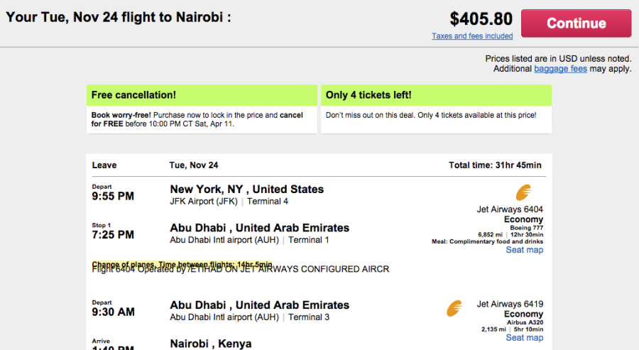 Orbitz has fares as low as $392 to Nairobi