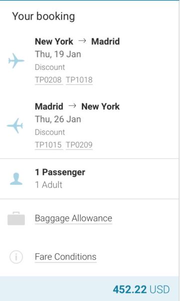 New York (JFK) to Madrid (MAD) for $452 round-trip in January: