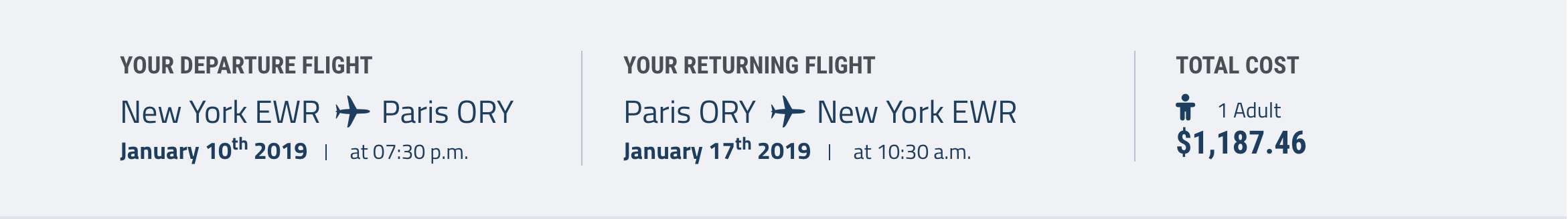Newark (EWR) to Paris (ORY) for $1,187 round-trip in January:
