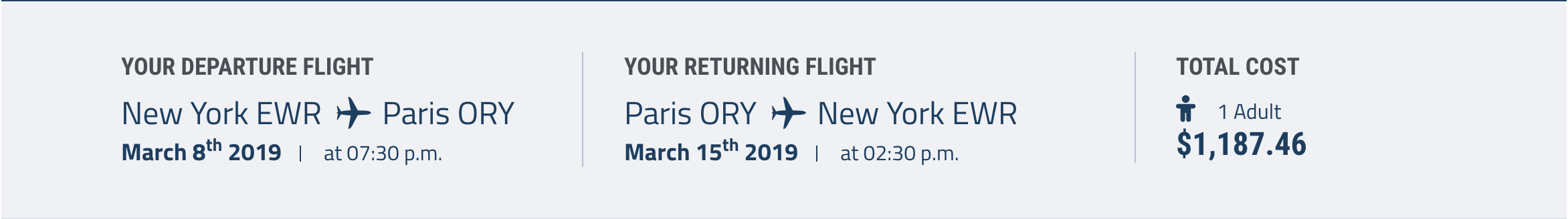 Newark (EWR) to Paris (ORY) for $1,187 round-trip in March: