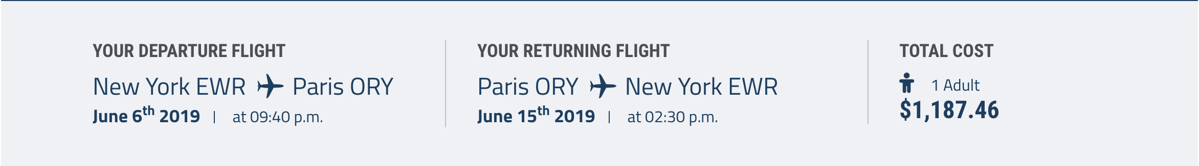 Newark (EWR) to Paris (ORY) for $1,187 round-trip in June:
