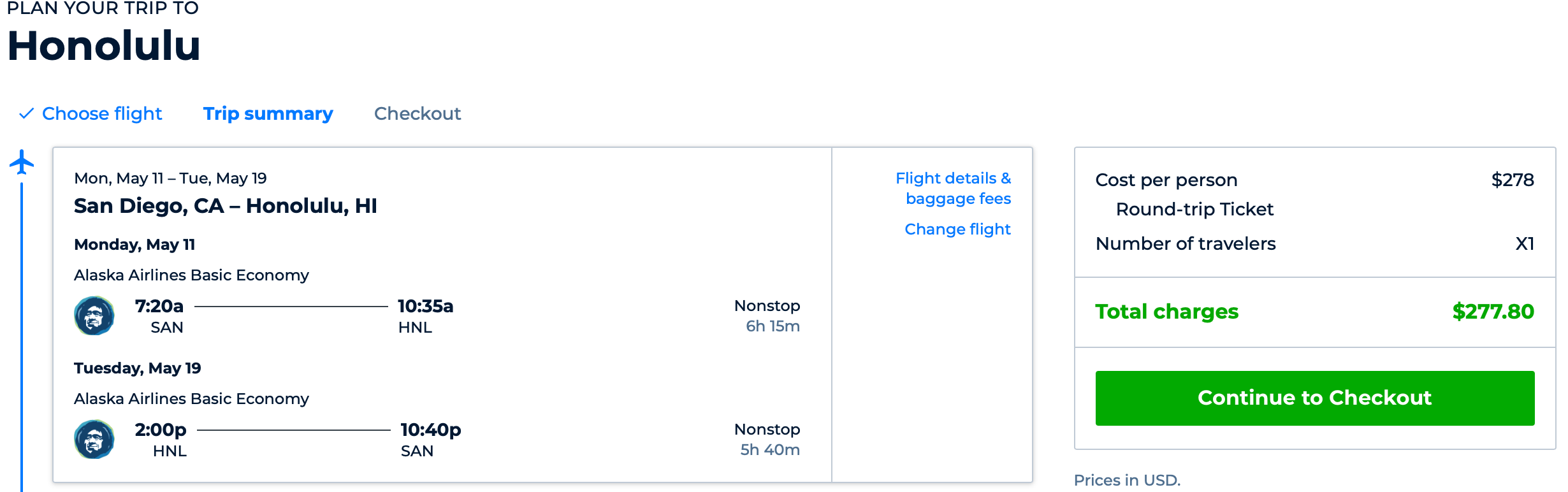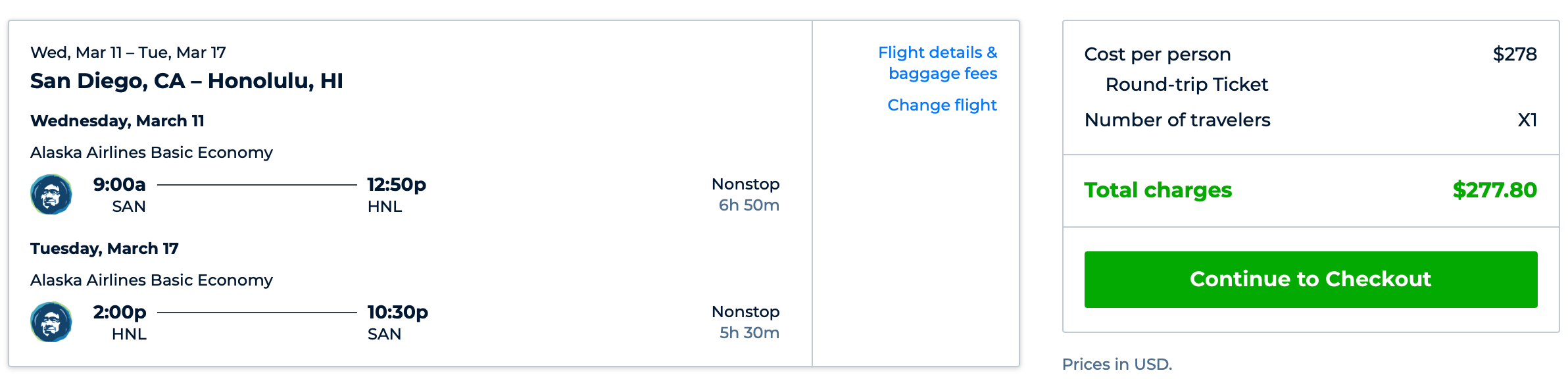 San Diego (SAN) to Honolulu (HNL) for $278 round-trip: