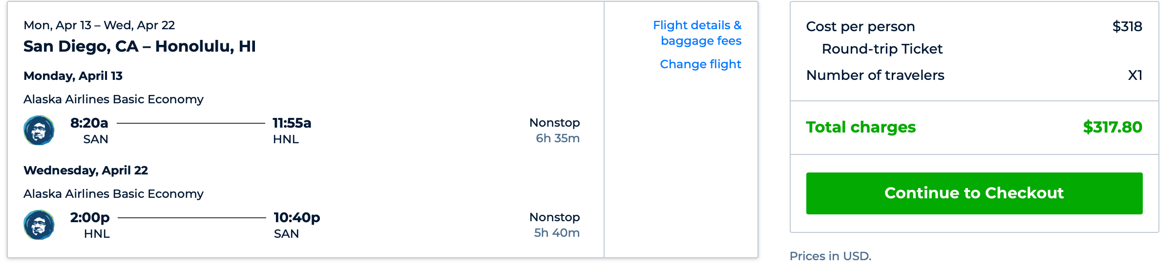 San Diego (SAN) to Honolulu (HNL) for $318 round-trip: