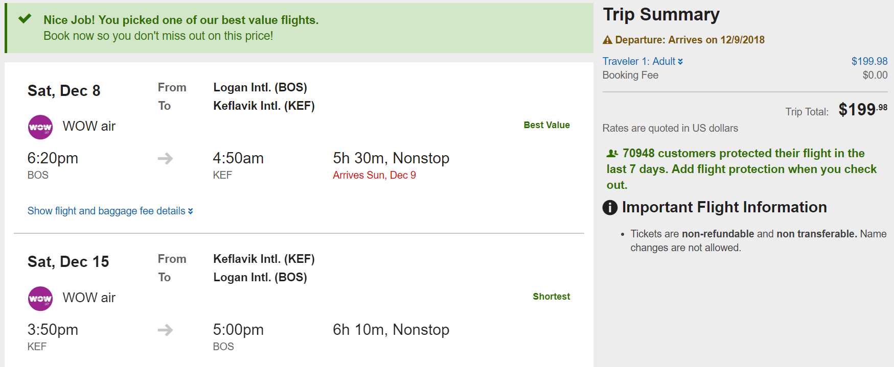 Boston (BOS) to Reykjavik (KEF) for $200 round-trip nonstop on WOW: