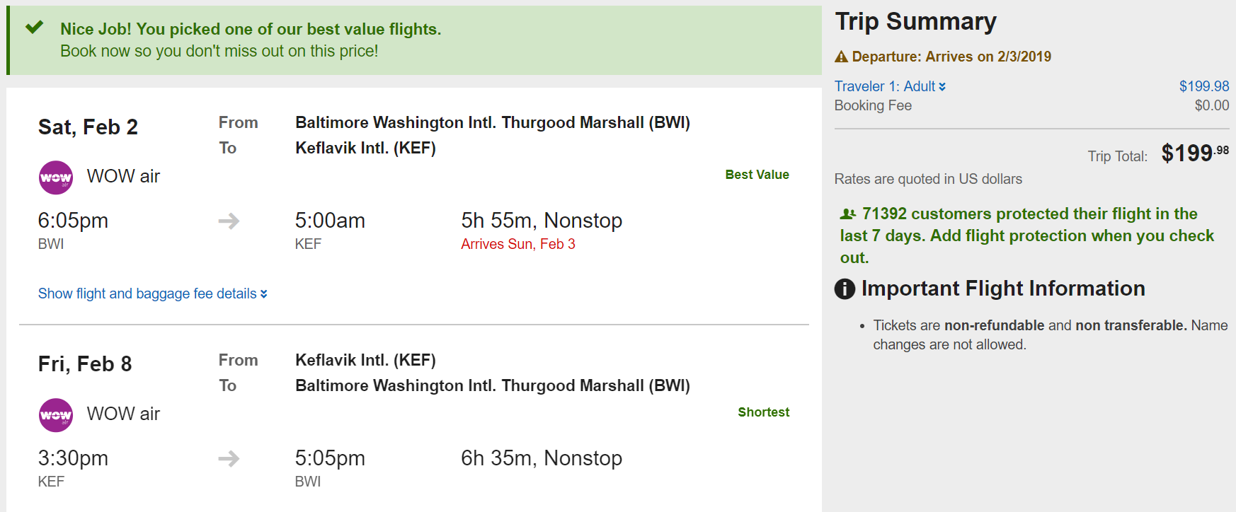Baltimore (BWI) to Reykjavik (KEF) for $200 round-trip nonstop on WOW: