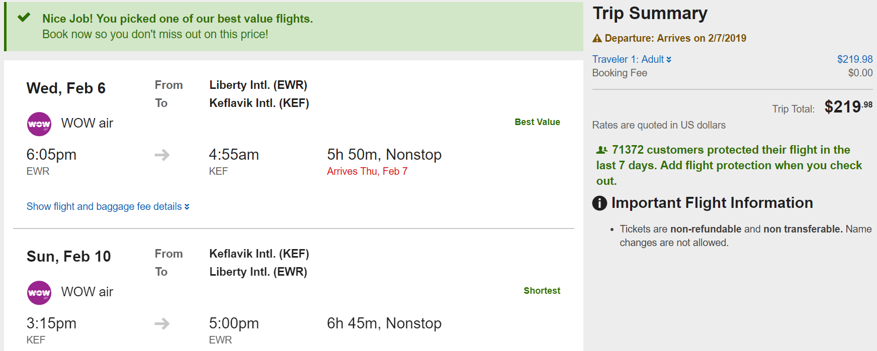 Newark (EWR) to Reykjavik (KEF) for $220 round-trip nonstop on WOW: