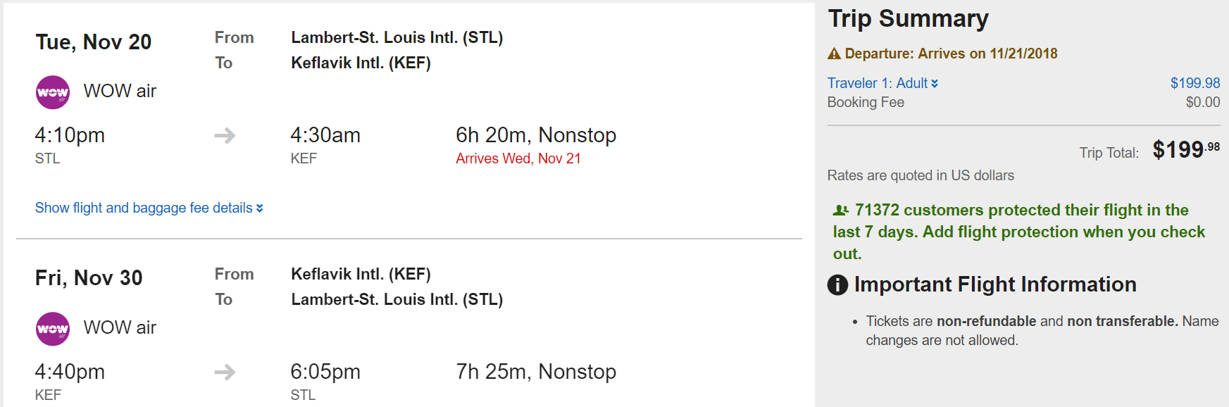 St. Louis (STL) to Reykjavik (KEF) for $200 round-trip nonstop on WOW: