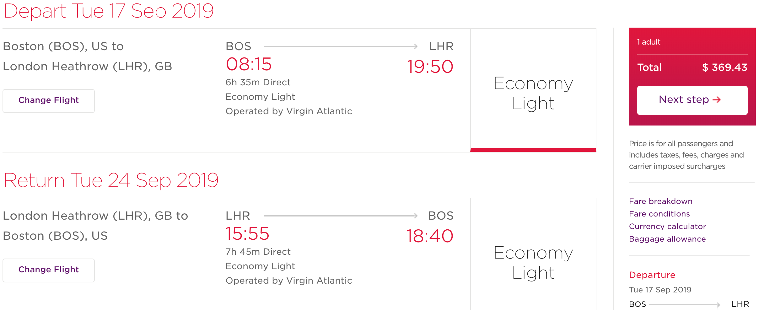 Boston (BOS) to London (LHR) for $369 round-trip nonstop on Virgin Atlantic: