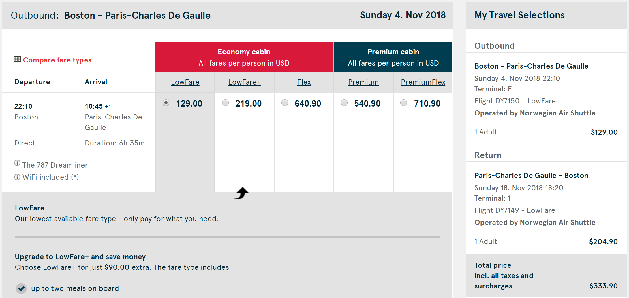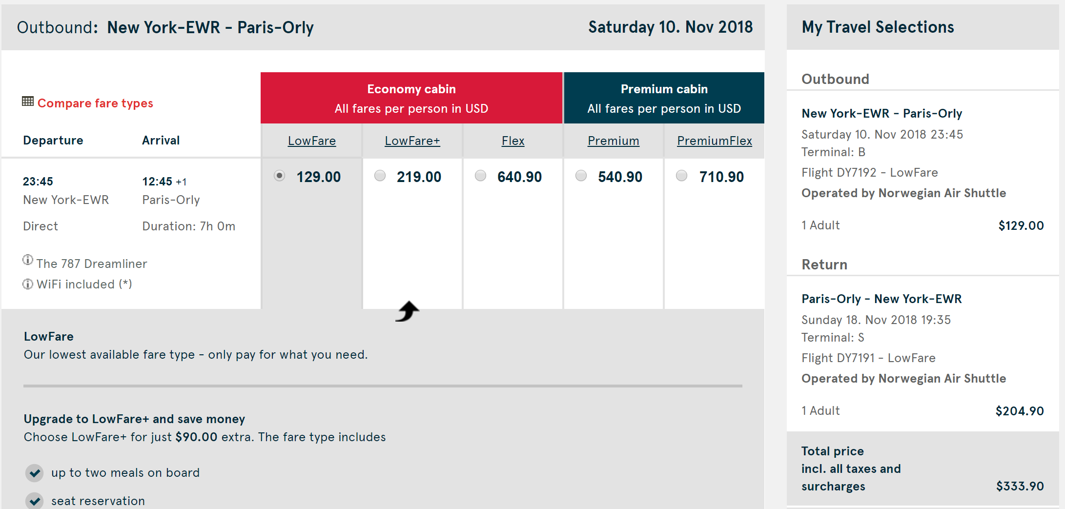 Not interested in Primera Air? There's some more expensive options available too on better-service low-cost carriers like Norwegian, which allow a free carry-on rollerbag, provide in-flight entertainment and have in-seat power.
