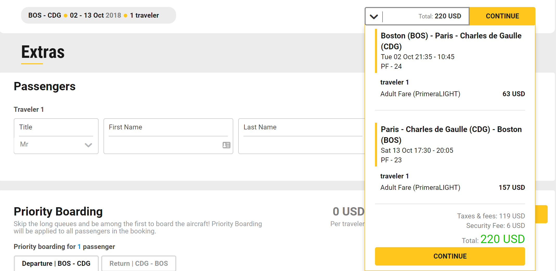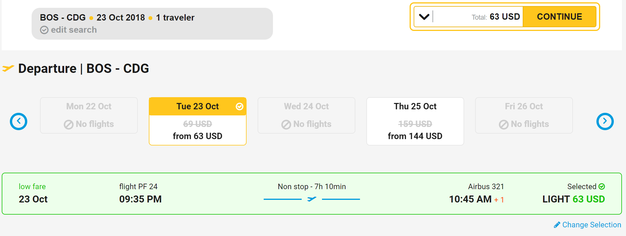 Boston (BOS) to Paris (CDG) for $63 one-way nonstop in October: