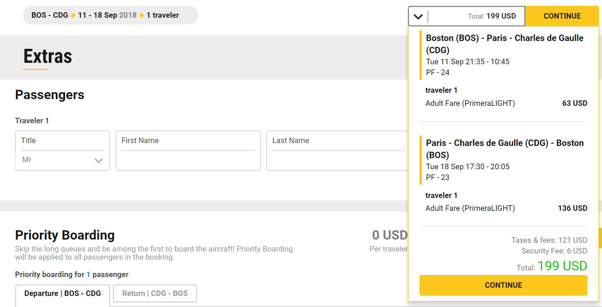 Boston (BOS) to Paris (CDG) for $199 round-trip nonstop in September: