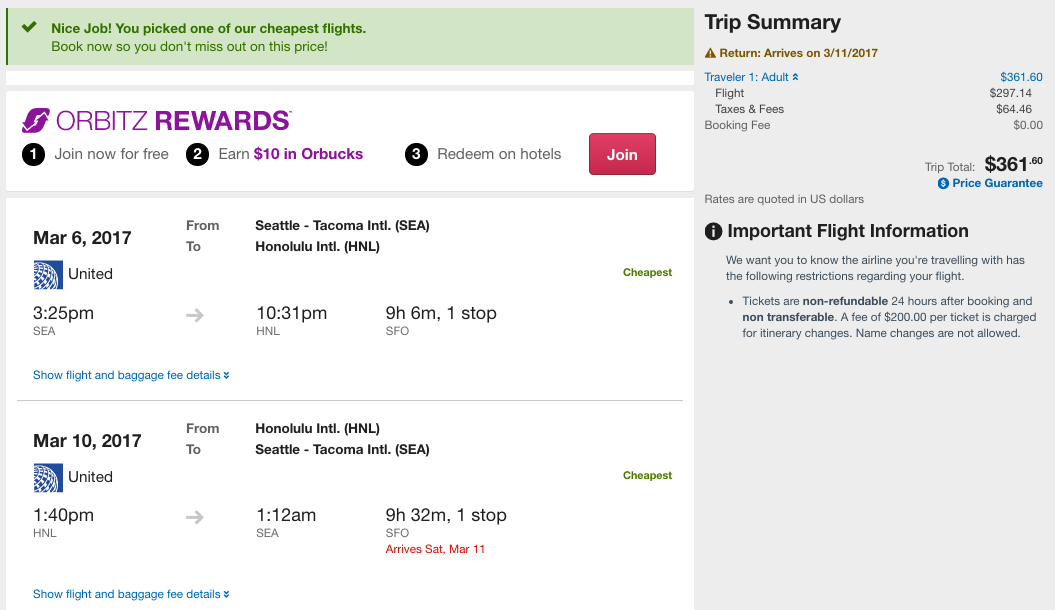 Seattle (SEA) to Honolulu (HNL) for $362 round-trip in March via Orbitz: