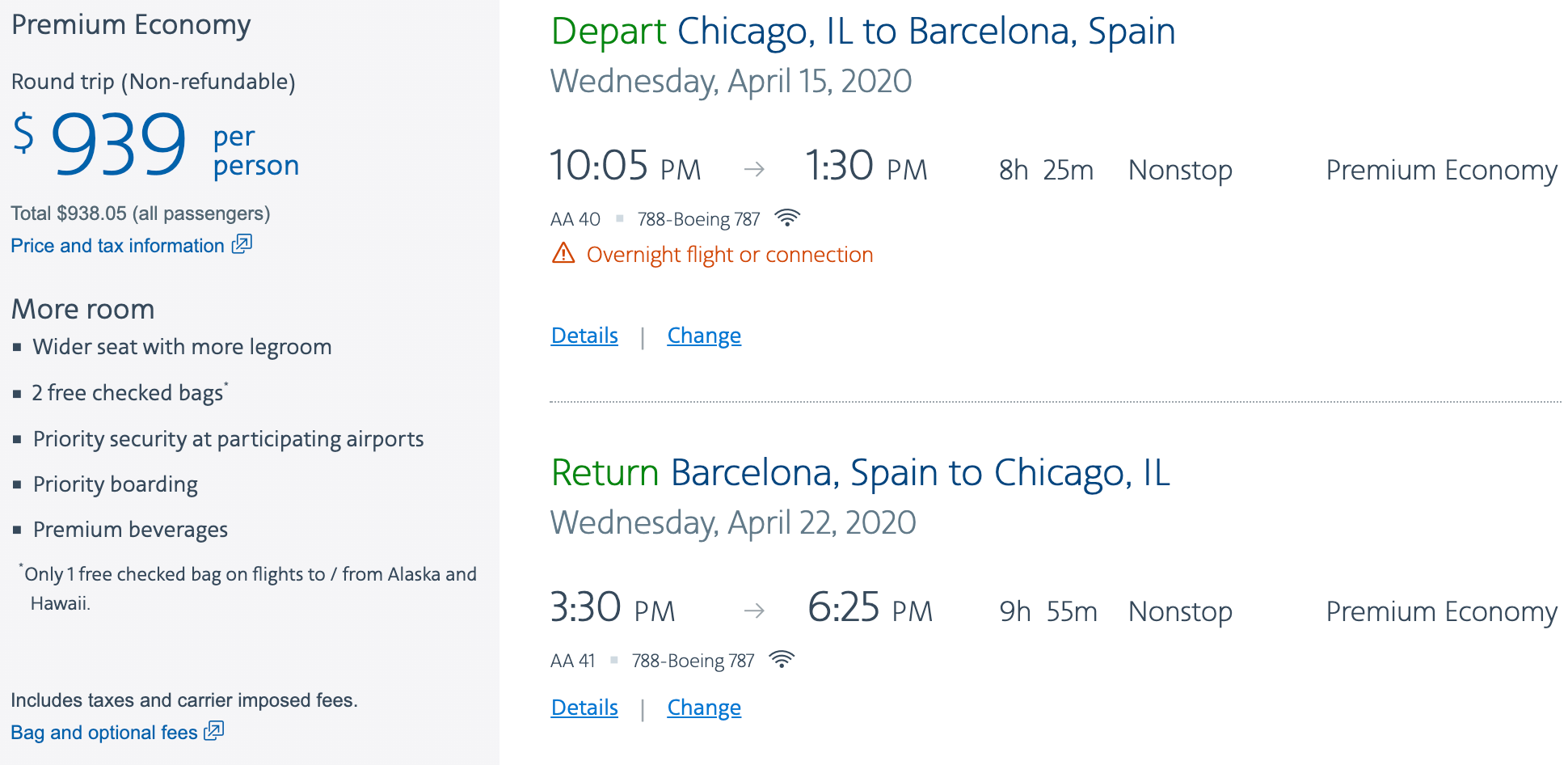 Chicago (ORD) to Barcelona (BCN) on American for $939 round-trip nonstop: