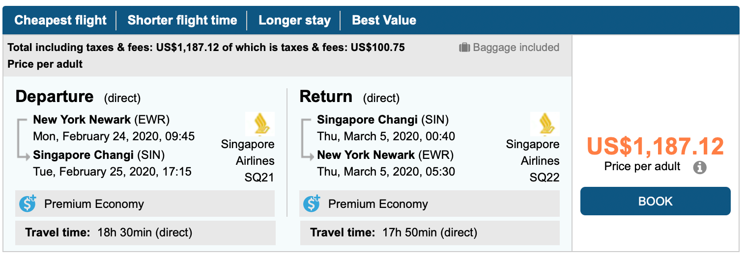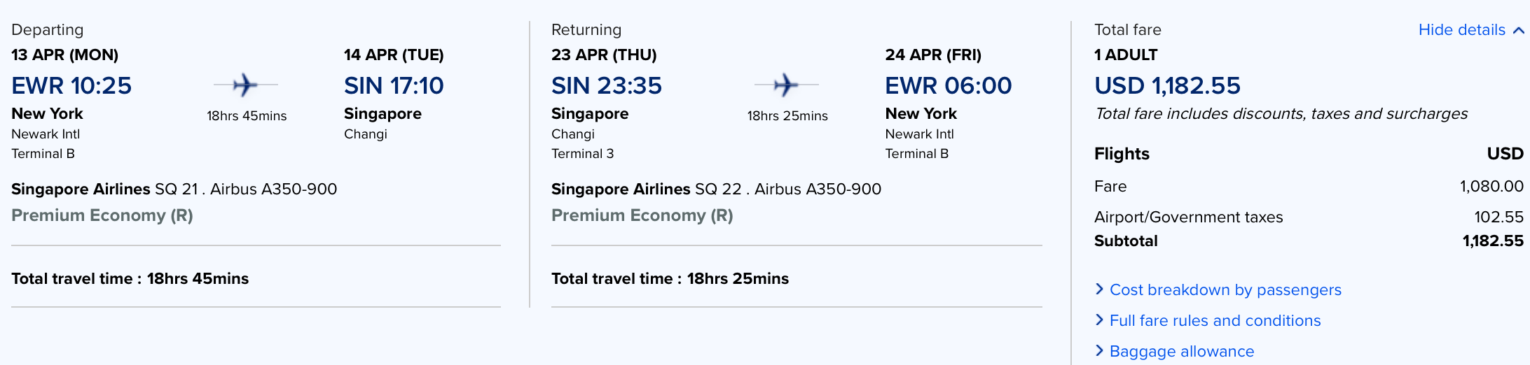 Deal alert: NYC to Singapore nonstop in premium economy for $1,171 round-trip