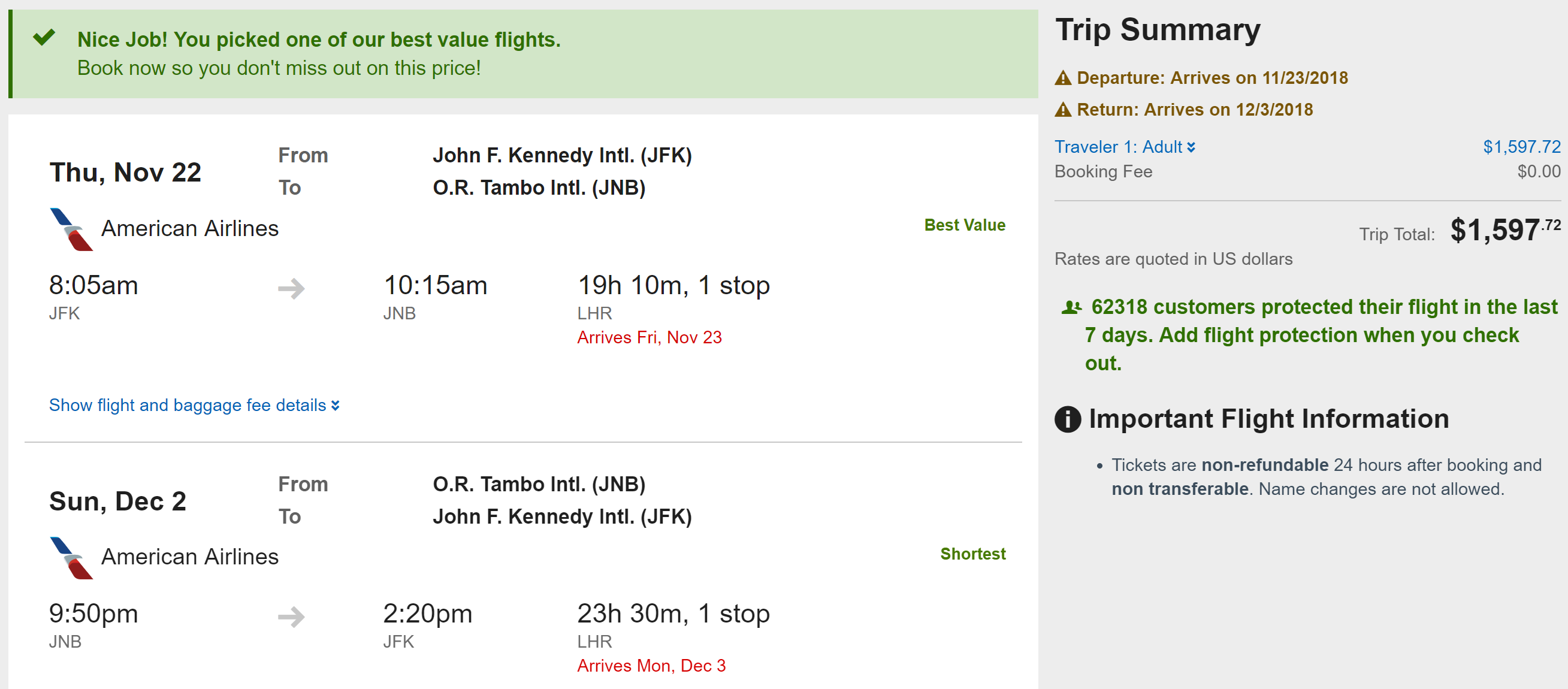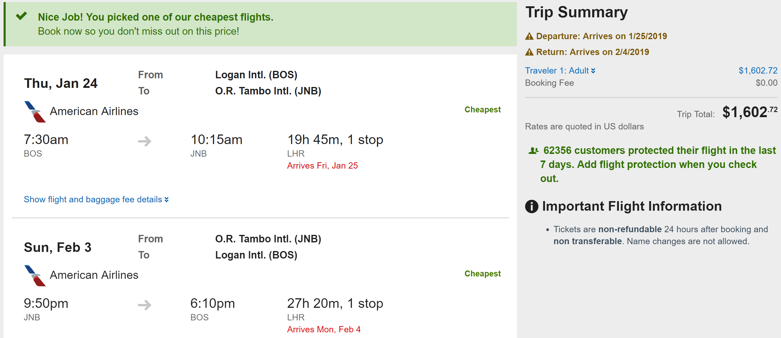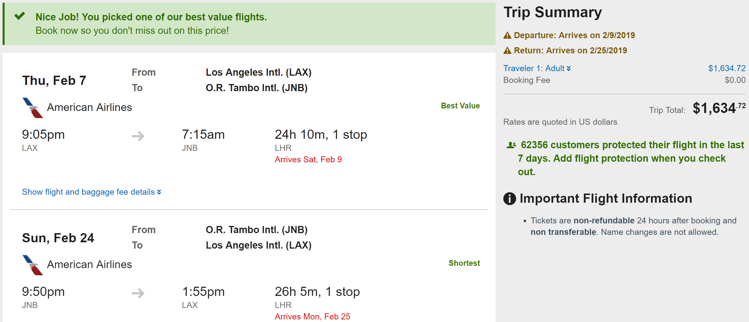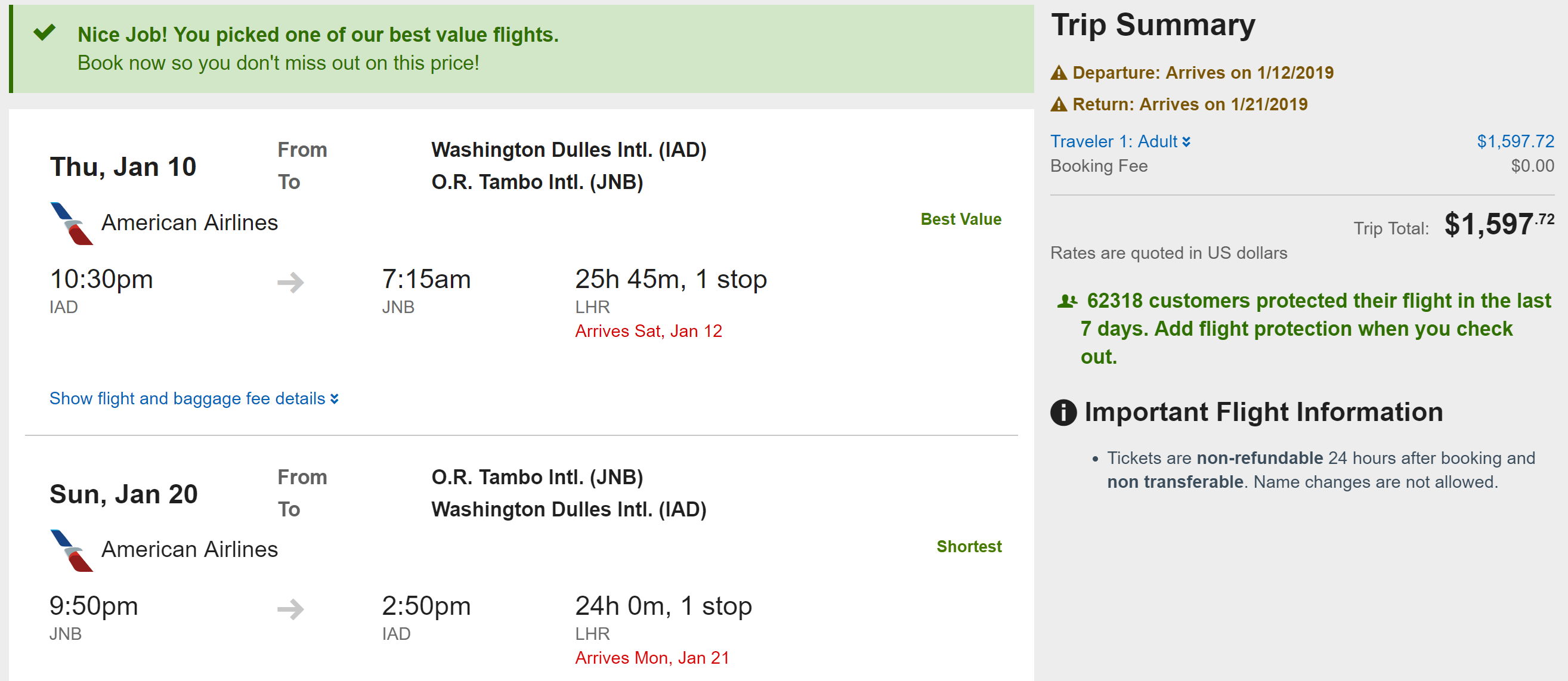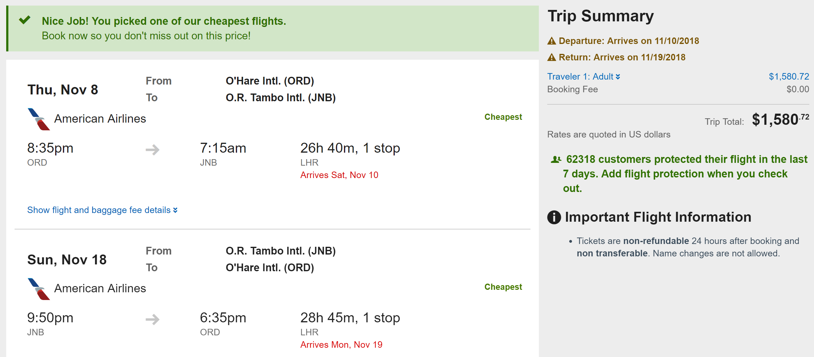 Routes: ORD/JFK/IAD/BOS/LAX/SFO/MIA/PHL/DFW/SEA to JNB