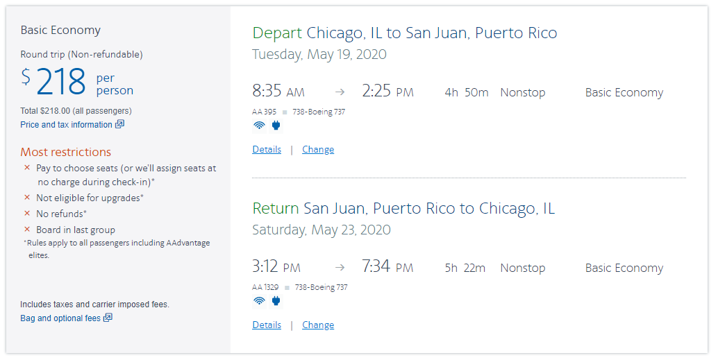 Chicago (ORD) to San Juan (SJU) for $218 round-trip nonstop on American: