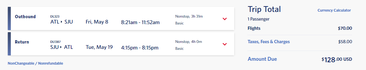 Atlanta (ATL) to San Juan (SJU) for $128 round-trip nonstop on Delta: