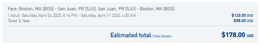 Boston (BOS) to San Juan (SJU) for $178 round-trip nonstop on JetBlue:
